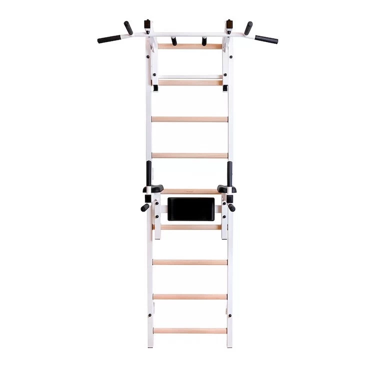 BenchK 732 stall bar available in black and white is a combination of BenchK 700 stall bar with additional equipment comprising: