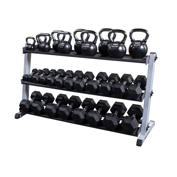 Body-Solid’s GKRT6 adds an optional third-tier kettlebell storage rack to the existing GDR60 dumbbell rack. The GKRT6 is designed to hold a 5-50 lb. kettlebell set and will help keep your workout space clean, organized and safe.