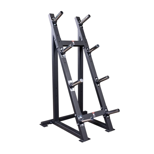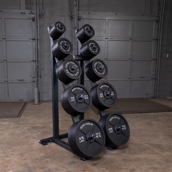 The GWT76 Weight Tree is a modular weight storage option allowing users to configure it for spacing of Olympic rubber bumper plates or traditional Olympic plates.