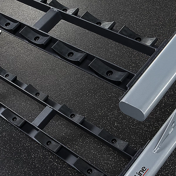 The SDKR500SD saddle dumbbell racks have designated spots for each size dumbbell, creating a neat and organized dumbbell display. The curved saddle design also prevents round dumbbells from rolling, creating a safer workout environment.