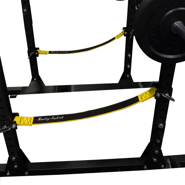 Compatible only with the Body-Solid SPR1000 Commercial Power Rack, the SPRSS Power Rack Strap Safeties are ideal for bench presses, squats, deadlifts, rack pulls, barbell rows and more. The SPRSS Strap Safeties are easy to adjust and will be your Olympic bar’s best friend by protecting its finish. The SPRSS Strap Safeties can be set at the same height for traditional power rack exercises and feature the ability to be offset for specific barbell movements.