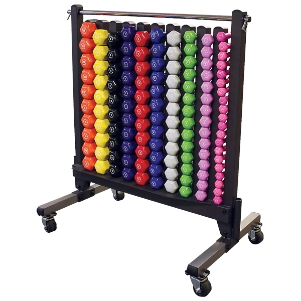 Designed for easy storage of your Body Solid vinyl dumbbells. Vertical storage allows over 100 vinyl dumbbells , from 1-15 pounds, stored in a compact space (42.5″W x 26.5″L x 46″H) with easy access. Heavy gauge steel tubing provides a solid and stable storage solution. Heavy-duty casters for easy transportation. The perfect companion for your Body Solid Tools Vinyl Dumbbells, the GDR500 is compact, stable and affordable.