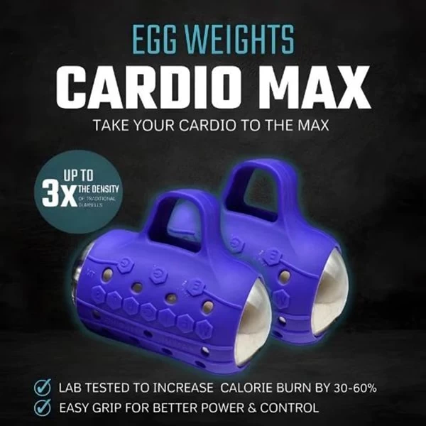 Cardio Max 3.0 lbs. Set Ultra-Dense Stainless Steel Hand Weights with Anti-Slip Silicone Finger Loop for Workout, Fitness, Training for Men and Women – 2 Eggs, 1.5 lbs eah