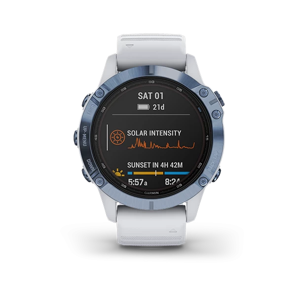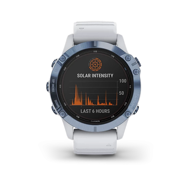 Harness the power of the sun with the Garmin Fenix 6 Pro Solar Watch. Featuring a Power Glass™ solar charging lens and customizable power manager modes, this smartwatch can stay on and performance-ready for weeks.