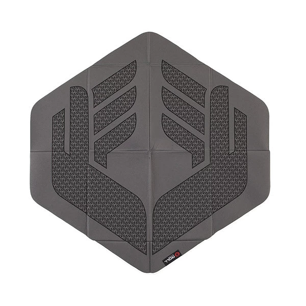 The StretchMat features a 3-layered design. The top surface is a soft, woven polyester making it easy to move, spin and stretch. The middle contains a 5mm layer of high density foam for comfort. The bottom is slightly grippy, water-proof material for use on any surface, indoors or out. Snow, mud, wet grass? No prob.