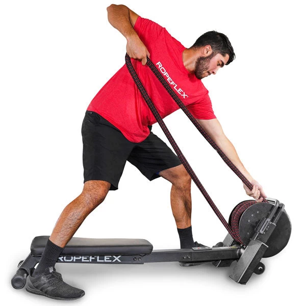 Compact horizontal rope trainer the RX2200 can be easily positioned or stowed away using built in wheel system. Tapered seat and stable frame enables a wide variety of training routines. This machine combines unique functional training for MMA, jiu-jitsu, wrestling, grappling, and other sports! The RX2200 offers unparalleled versatility and delivers an unbeatable strength training, cardiovascular training, and muscular endurance training in one simple, compact, durable and mobile product.