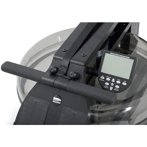 The WaterRower All-Black Rowing Machine with S4 Performance Monitor is the perfect rowing machine for at home use. The WaterRower All Black has been specifically designed for High Traffic Areas such as Studios, Commercial Gyms, Rehabilitation Clinics, etc. The high tech black rails have been styled to prevent scuffing, which makes it more resistant and durable as compared to the Natural model. Each machine has been hand finished with Danish Oil and Urethane for protection. Rowing is one of the best exercises for giving you a full body workout by incorporating every muscle group in the body. In terms of burning calories rowing is one of the exercises that burns the most calories because you are using every muscle in your body. As opposed to most rowing machines which have wind resistance, the waterpower machines use water as resistance, giving you the most accurate and quietest rowing machine on the market today. If you are looking for a full body workout that is enjoyable and easy to do, then look no further than the WaterRower All Black Rowing Machine.Â